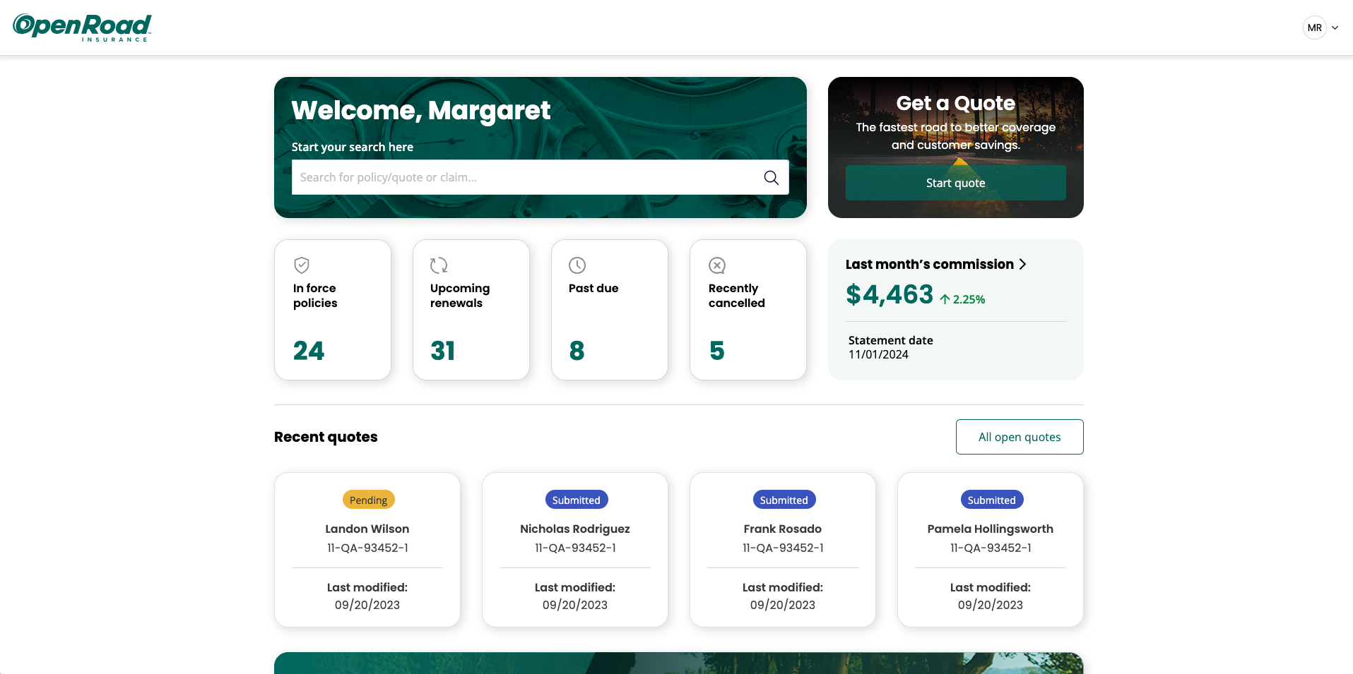 Agent360 is a self-service portal designed for insurance agents, built through in-depth task analysis and client-driven discovery. It features a customizable dashboard with adaptable components, enabling agents to efficiently manage policies, track commissions, and support their clients.
